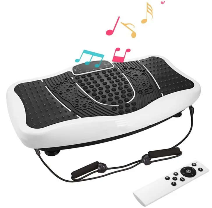 Ultrathin Body Slimmer vibration plate machine with resistance bands, remote control, and adjustable speeds. Ideal for weight loss, muscle toning, and home fitness.